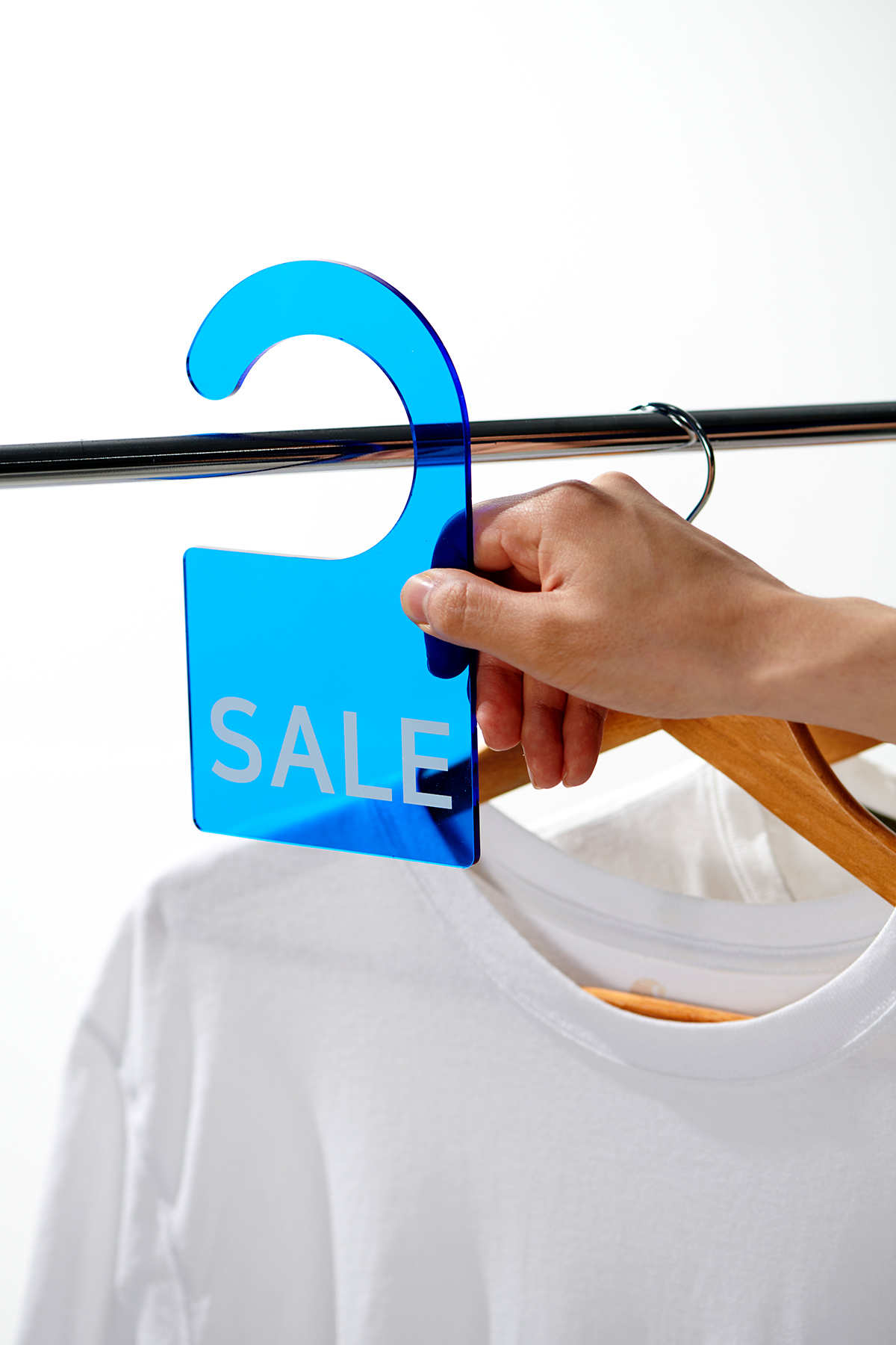 설치가 따로 필요하지 않고 간편하게 행거에 세일 표지판을 걸면 세일 표시를 할 수 있어 간편합니다.